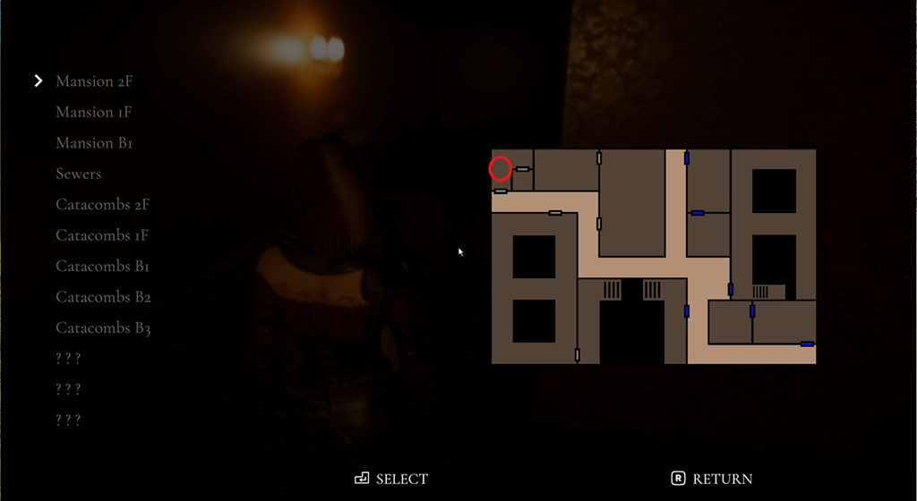 呪われたカギを使う場所だけど、地下墓地のセーブポイントの近くになる。所々で敵に遭遇するから慎重に進もう。