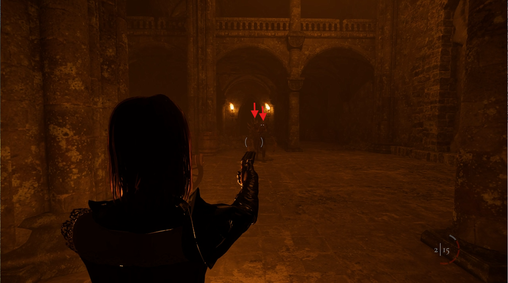 祭壇を調べるとラスボス出現。黒い灯火台またいなのと柱の間を抜けると、少し引き離すことができる。8分くらいかかったけど、3~4回目の挑戦で倒せた。普通に走っていても追いつかれるし、必勝パターンみたいなのは考え付かなかったな。逃げ回って、羽ばたきの音が遠のいたら振り返って撃って…というところ。