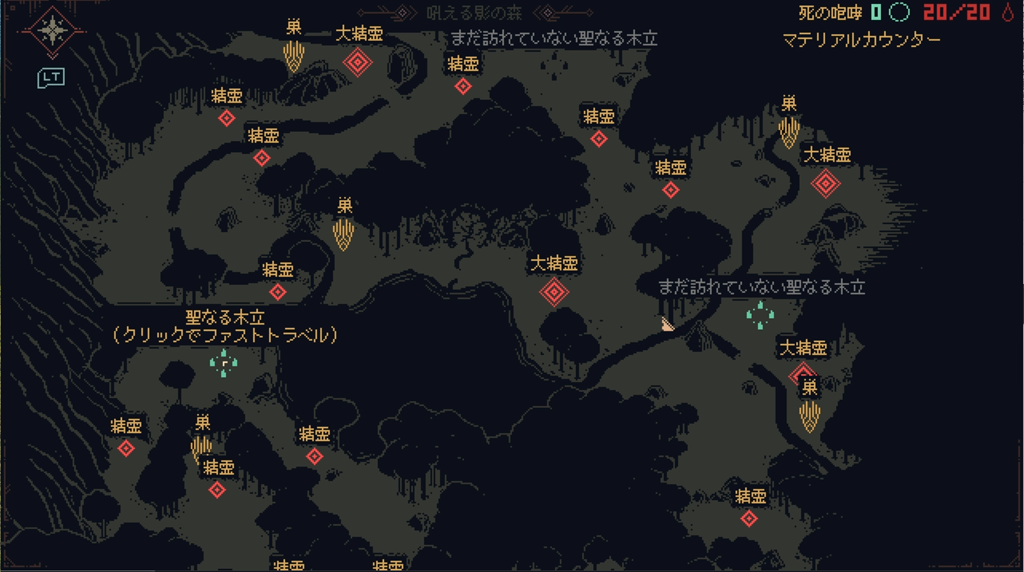 マップの北と南に聖なる木立があるけど、南の方が到達しやすいんじゃないかと思う。