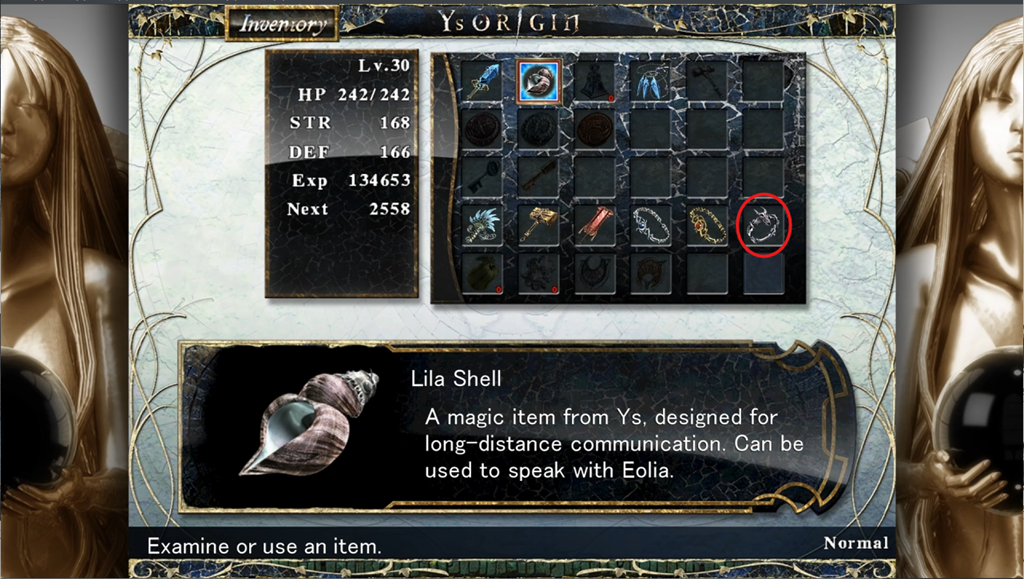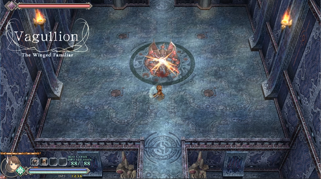 女神像を浄化したら、必ずセーブをしておこう。進むとそのままボス戦だったりする。※ヴァジュリオンってイース一作目だと、前半のラスボスでプレイヤー泣かせ。真の実力はこんなもんじゃない。