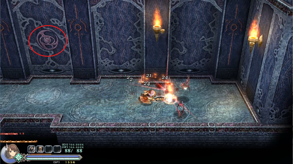 赤丸で囲ったマークのある壁や床は、マスク装備で扉などが現れる。※敵が見えなくなる。