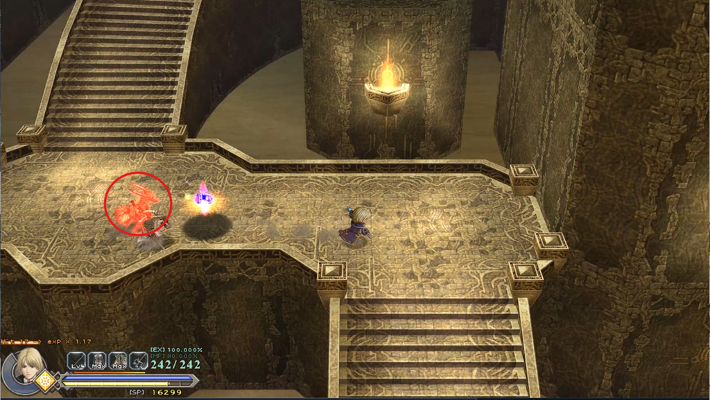 戦闘で早めに習得したいのはジャンプして、敵の頭上での下突き。短時間だけど、スタンさせられる。ヒューゴではあまり関係ない。ヒューゴとトールの特殊攻撃は、停止して少し間をおいてから攻撃がコツ。